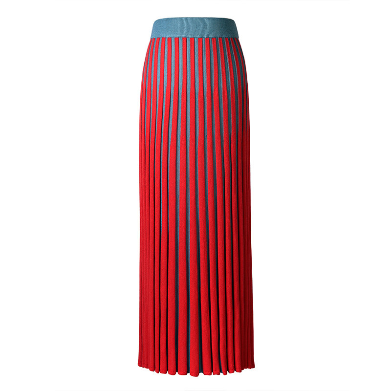 ael定制人手一条羊毛针织半身裙秋冬女百褶拼接撞色...