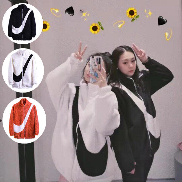 2020新款大勾情侣款运动休闲毛毛绒拉链外套男女双...