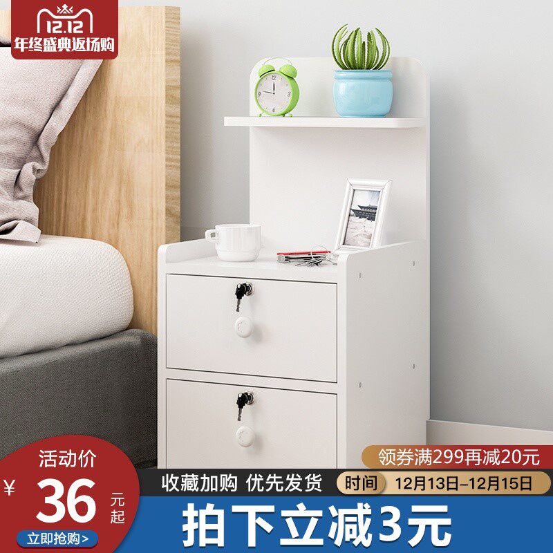 床头柜简约现代卧室小型带锁收纳柜简易床边柜欧式...