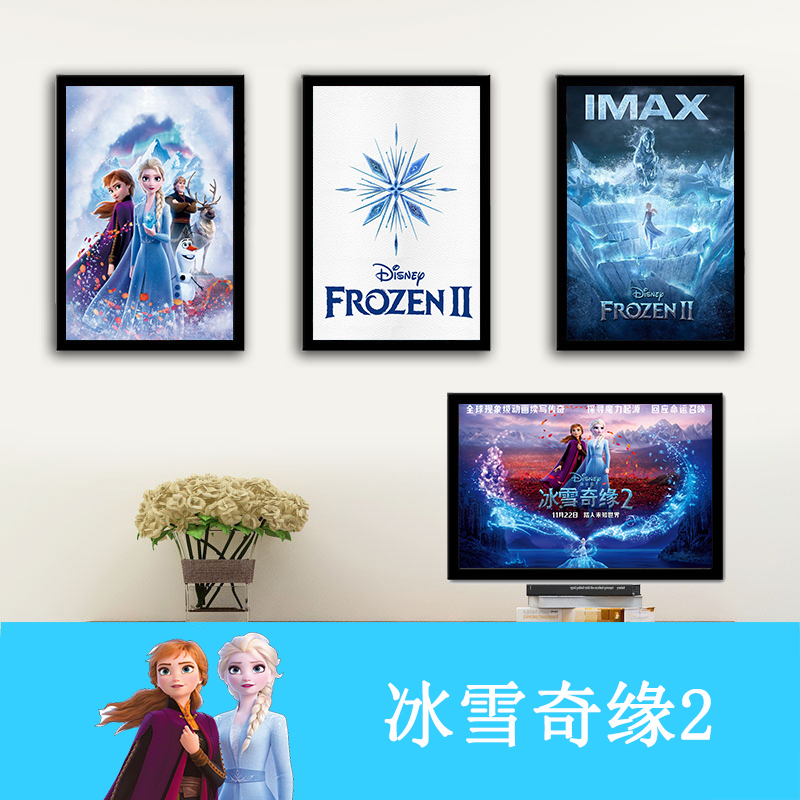 冰雪奇缘2海报挂画写真画有框画布 Elsa Anna海报壁...