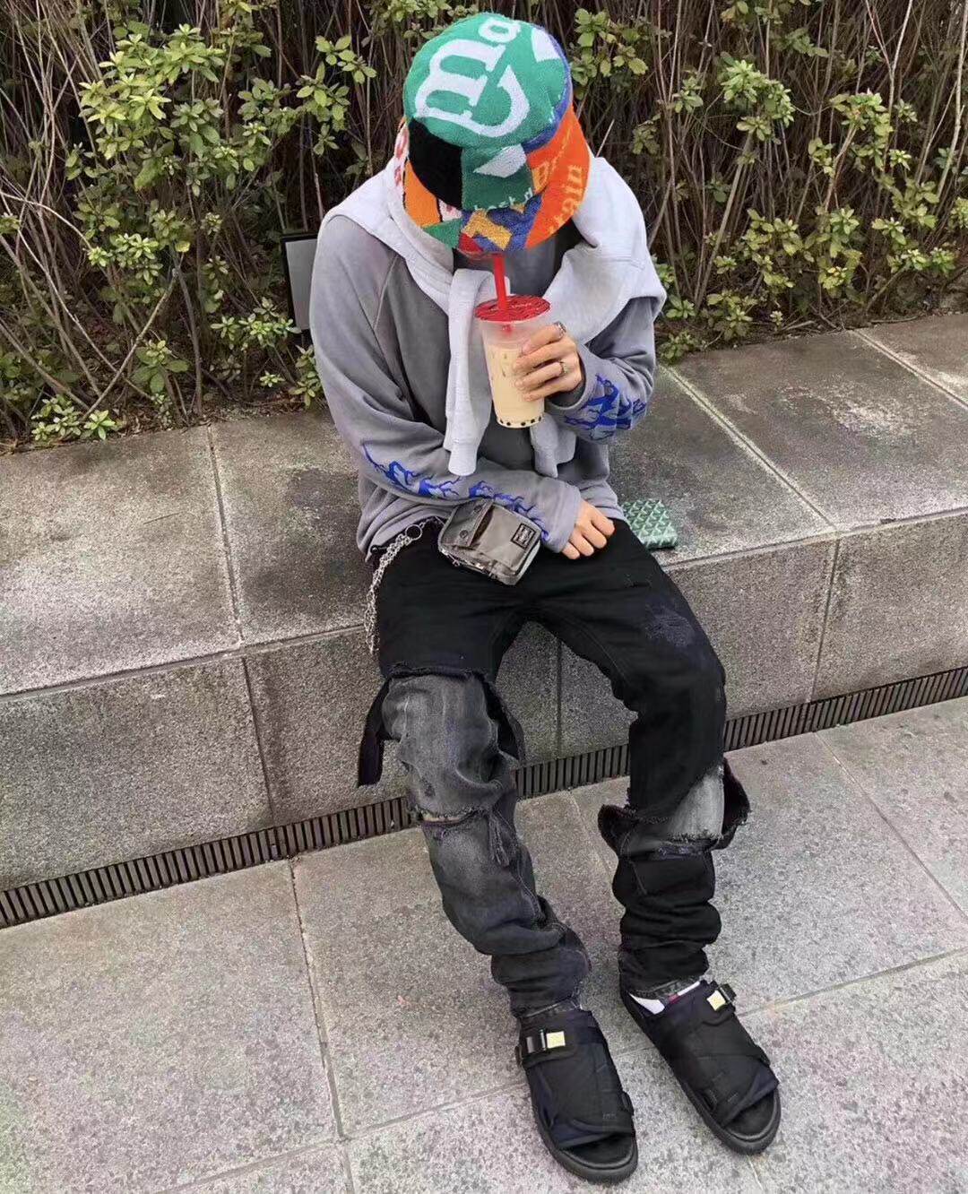 RAF 19FW SIMONS 双层解构破洞拼接 高街牛仔裤潮男...