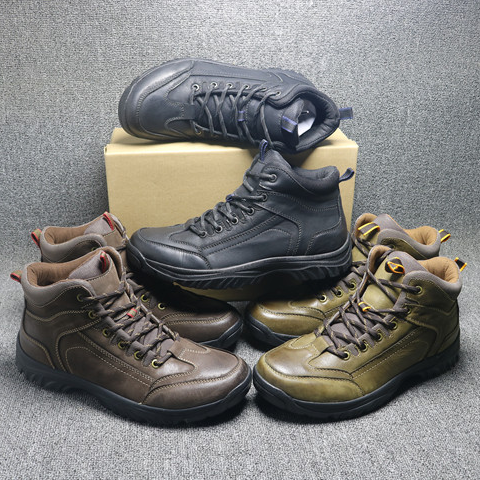 男士全皮头层牛皮户外耐磨耐穿登山鞋高帮外贸原单...