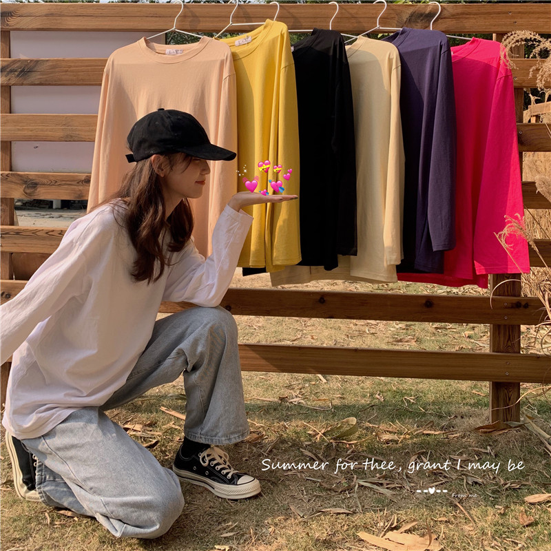 白色长袖T恤女2020新款韩版百搭打底衫宽松中长款内...