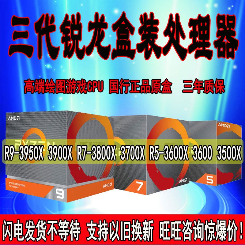 AMD锐龙R5处理器3500X盒装3600套装R7CPU3700散片38...