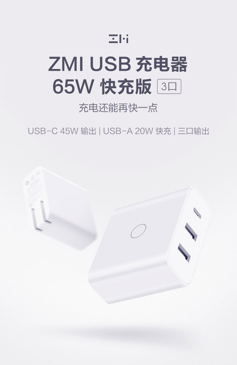 ZMI紫米65W充电器PD快充45W闪充小米笔记本MacBook...