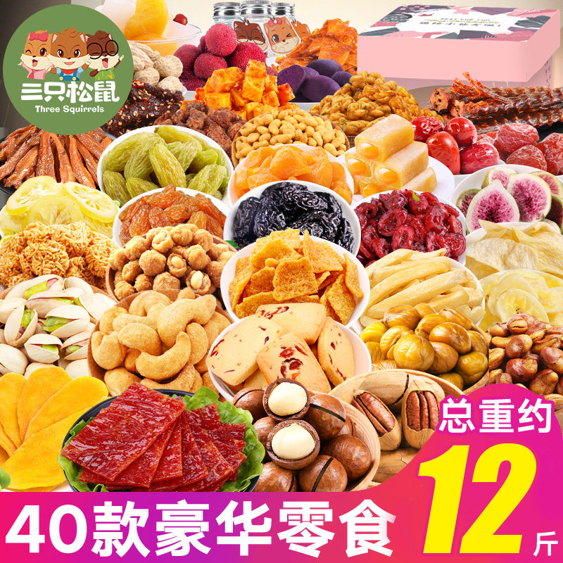 三只松鼠零食大礼包巨型女生休闲食品年货节小吃超...