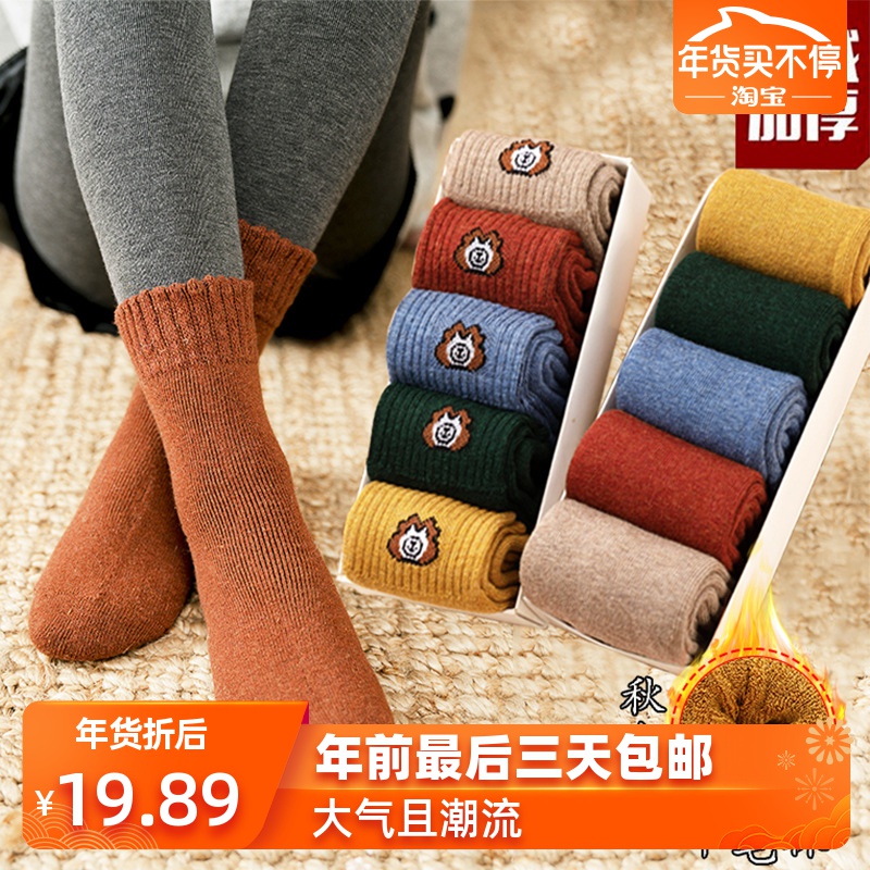 袜子女袜冬季加绒加厚保暖毛圈袜日系纯色女士中筒...