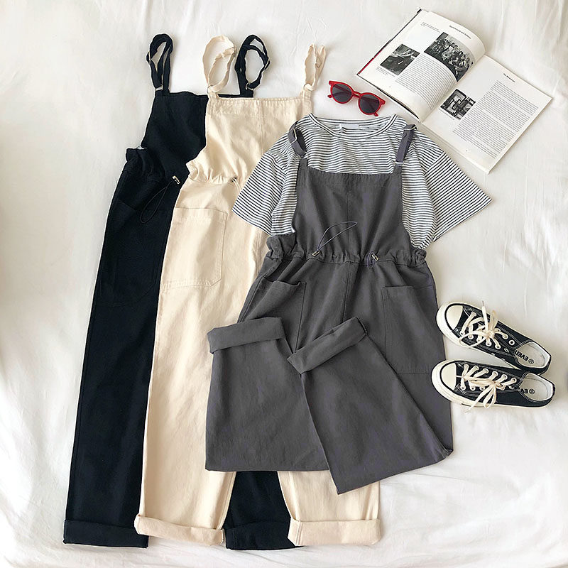 文艺风减龄休闲背带裤女2020春夏新款韩版抽绳收腰...