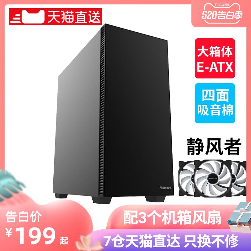 航嘉静风者电脑机箱台式主机箱静音ATX中塔简约防尘...