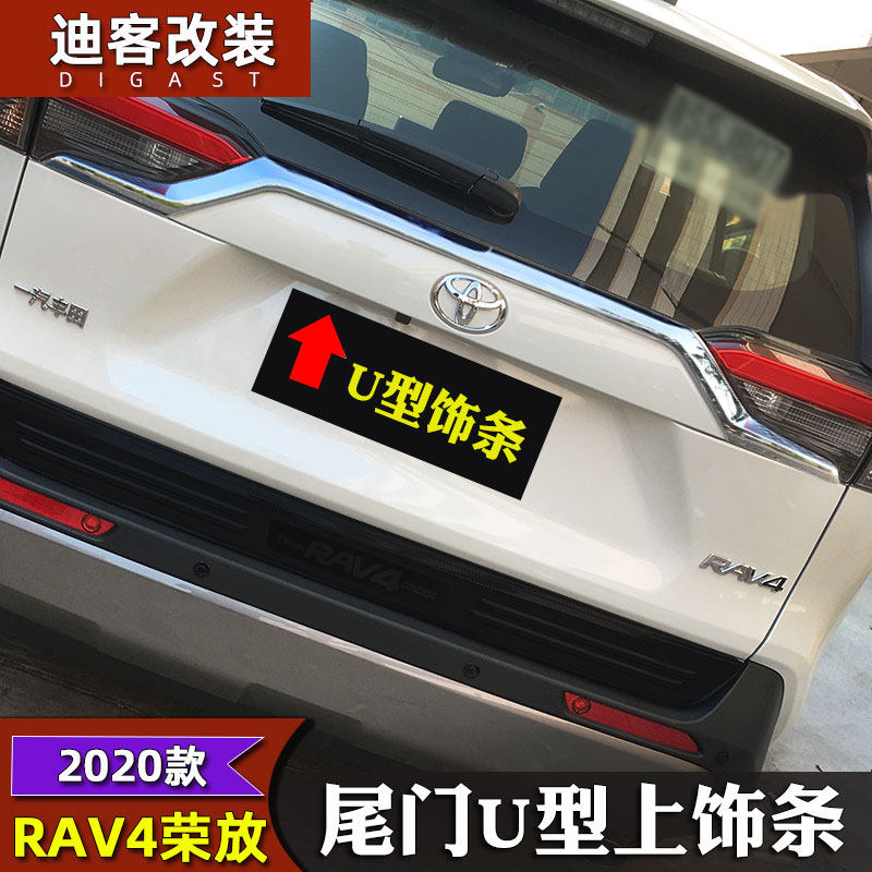 2020款rav4尾门上饰条 第五代荣放后车标贴片U型亮...