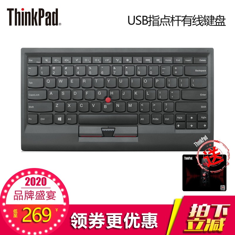 联想 ThinkPad 小红点有线USB键盘 指点杆旅行小键...
