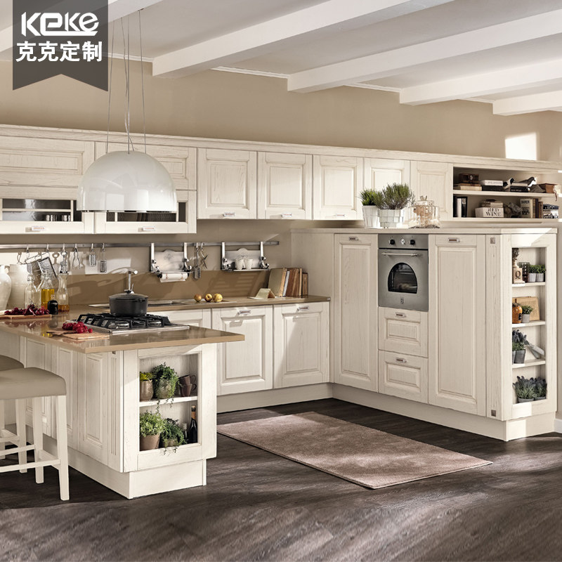 欧式整体厨房橱柜定做白色实木厨柜开放式橱柜L型全...
