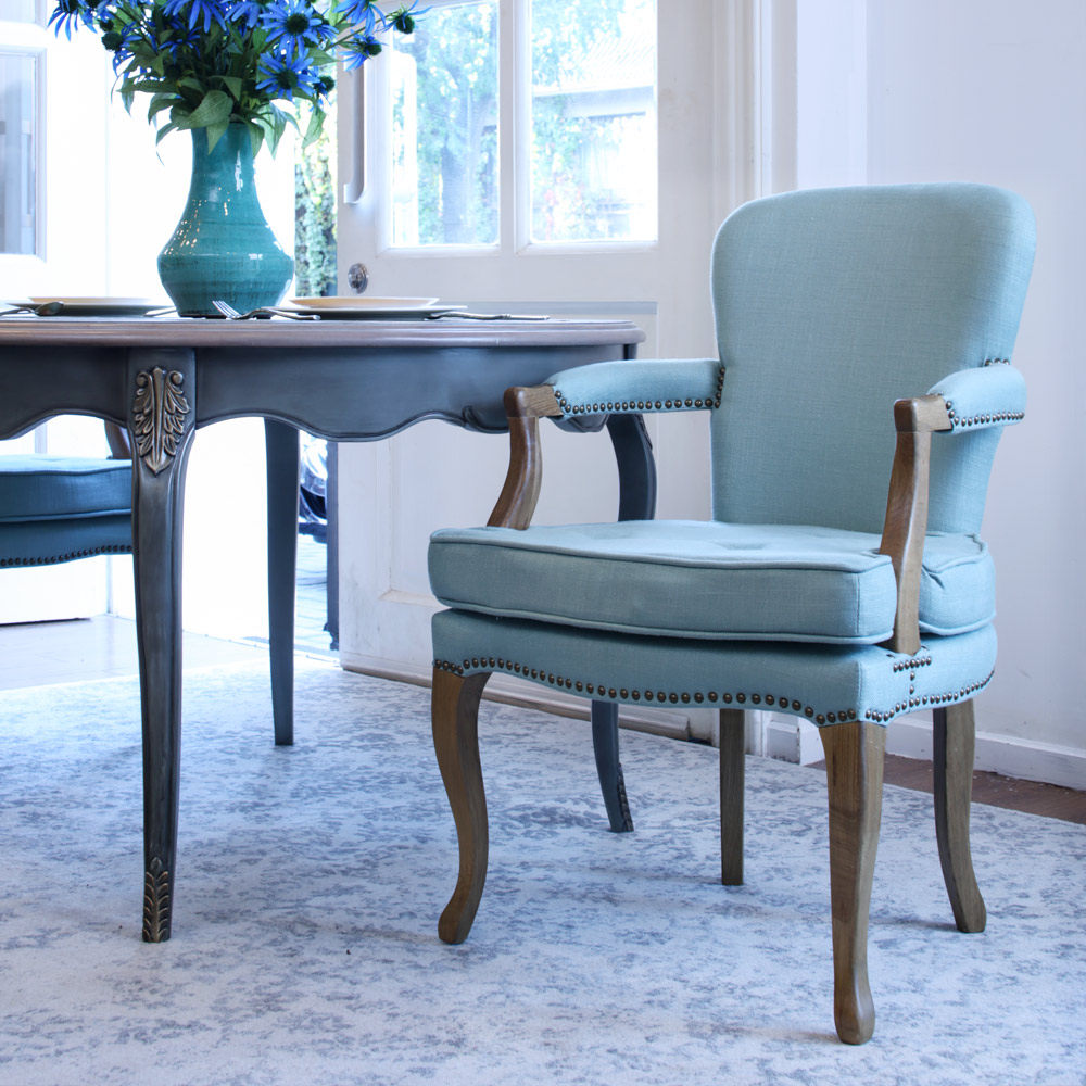 法美家美式乡村带扶手实木橡木浅蓝色布艺做旧时尚...