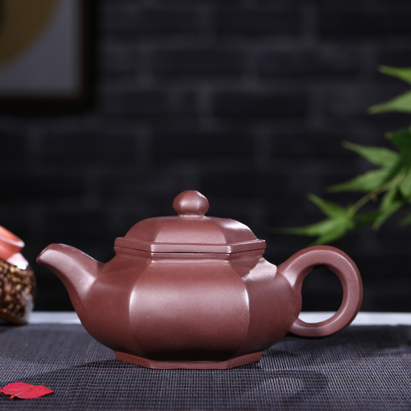 正品全手工紫砂茶壶 宜兴紫砂壶之六角菱花壶 原矿...