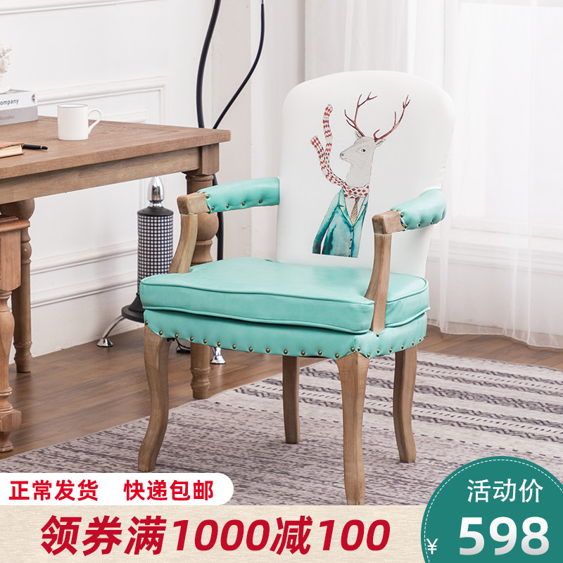 美式实木书房椅欧式餐椅复古做旧扶手椅子洽谈休闲...