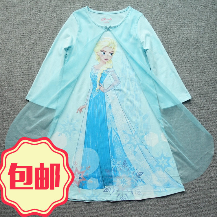包邮女儿中大童装冰雪公主爱莎ELSA长袖连衣裙家居...