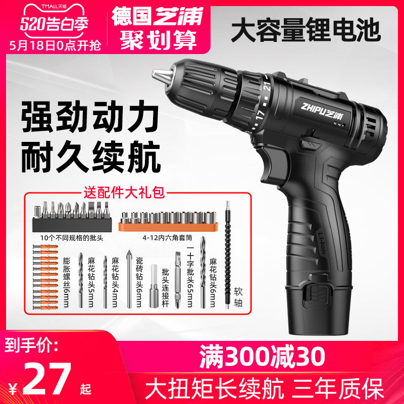 德国芝浦锂电钻充电式手电钻小手钻电钻家用多功能...