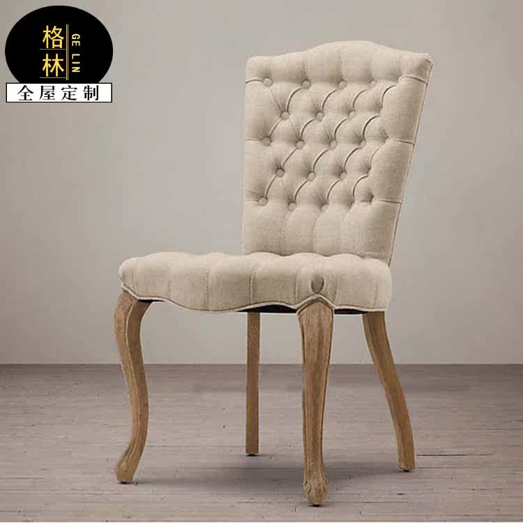 美式乡村简约复古实木餐椅闲靠背椅咖啡椅软包书椅...