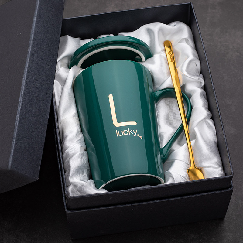 创意情侣陶瓷马克杯带盖勺潮流男女家用喝水杯子个...