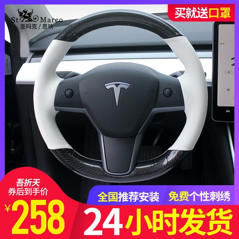 特斯拉方向盘套Model 3 model S model X手缝真皮翻...