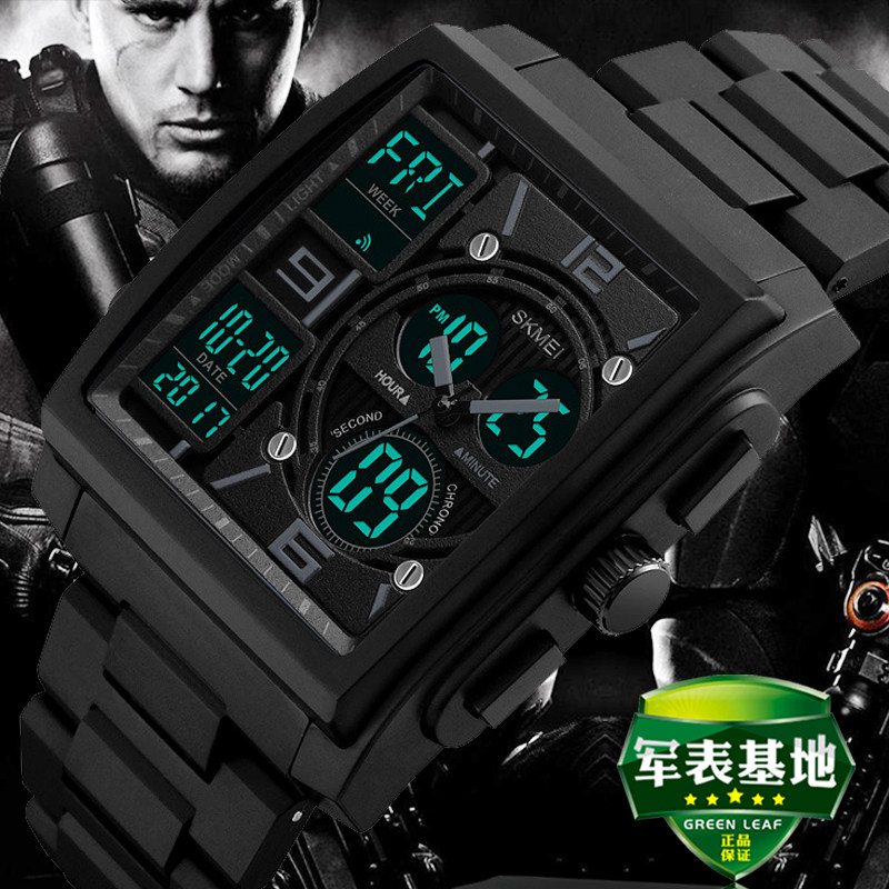 方形手表男士多功能运动电子手表双显夜光运动防水...