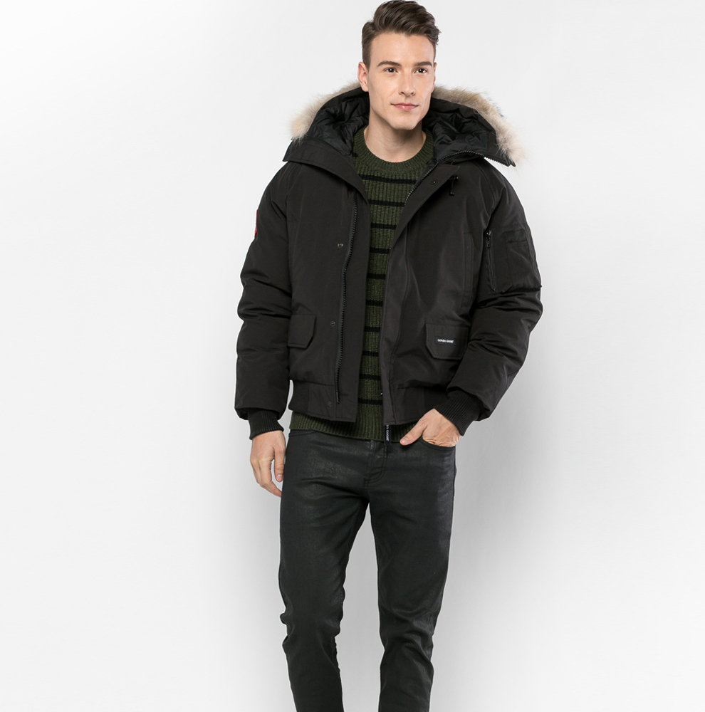 加拿大冬季情侣款鹅绒狼毛领普京短款飞行员夹克羽...