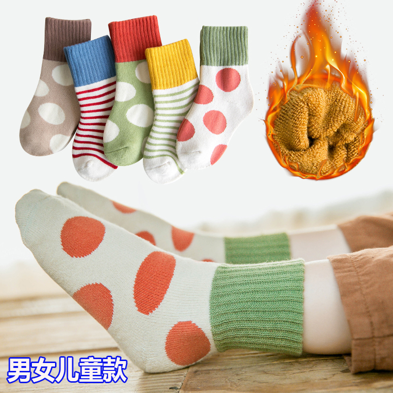 冬季儿童袜子纯棉中筒袜男女童加绒加厚毛圈袜小童...