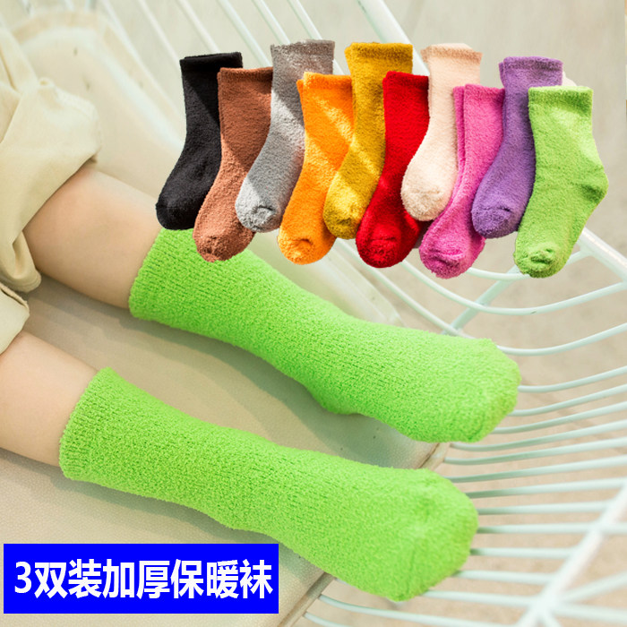 儿童珊瑚绒袜子冬季加厚地板袜中筒袜男女童宝宝加...