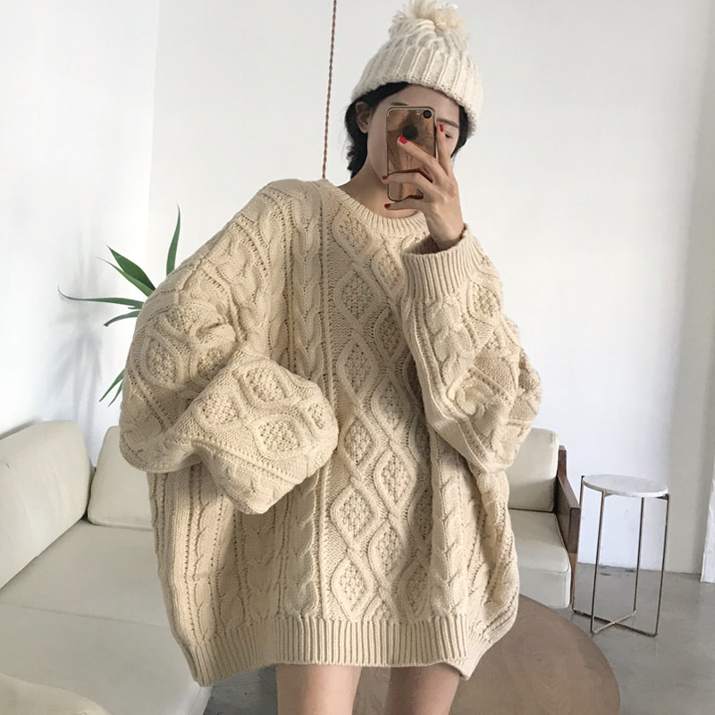 2019秋冬新款韩版慵懒风加厚外穿上衣宽松针织衫中...