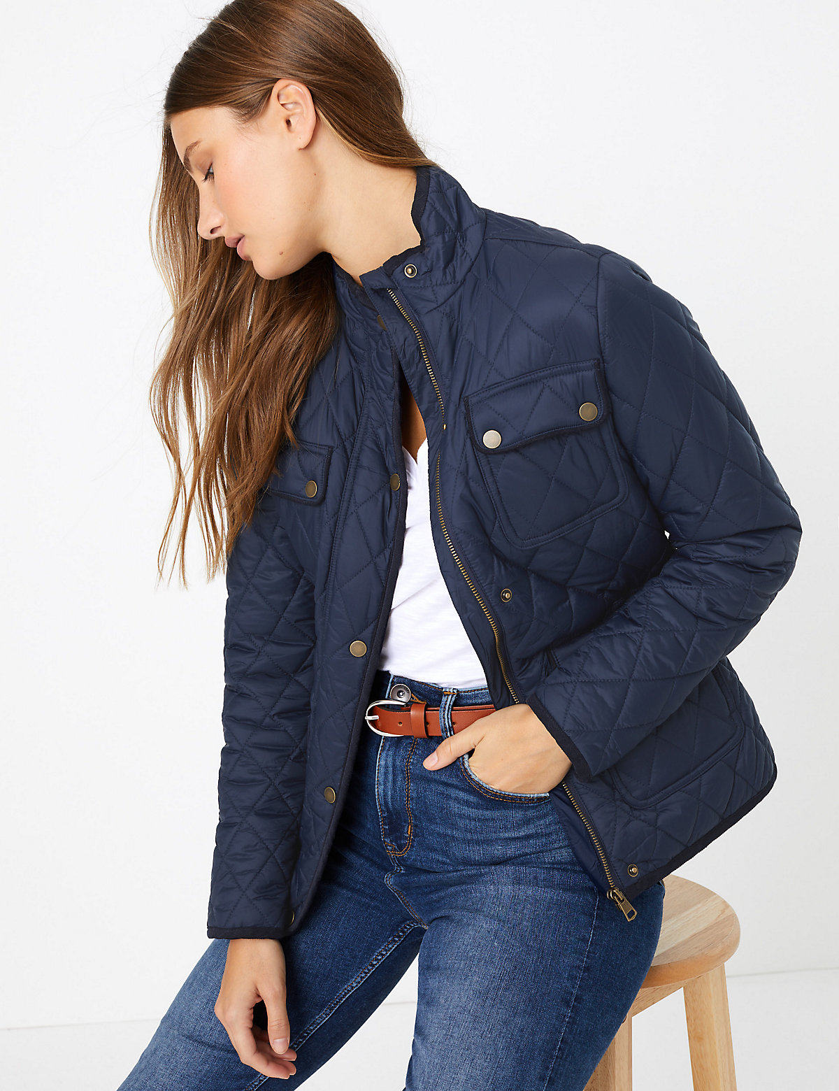 小驴MS马莎英国代购2019夏秋女装高领休闲菱格夹克棉服