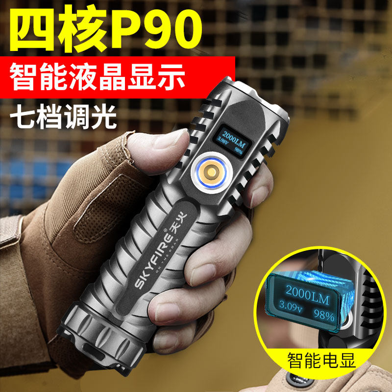 天火P90强光手电筒小便携可充电超亮远射疝气灯户外...