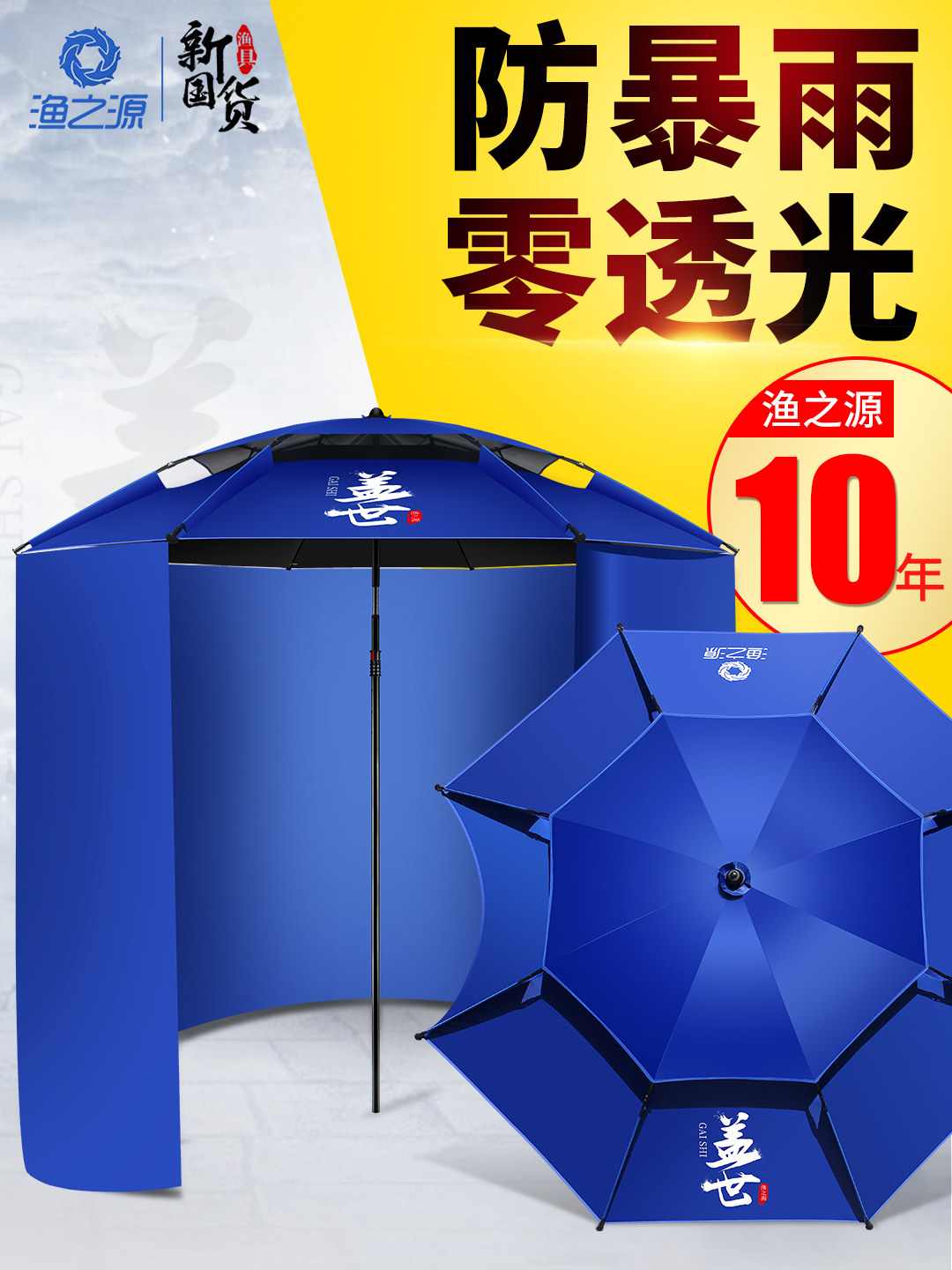 渔之源钓鱼伞折叠万向防雨大钓伞加厚黑胶围布遮阳...