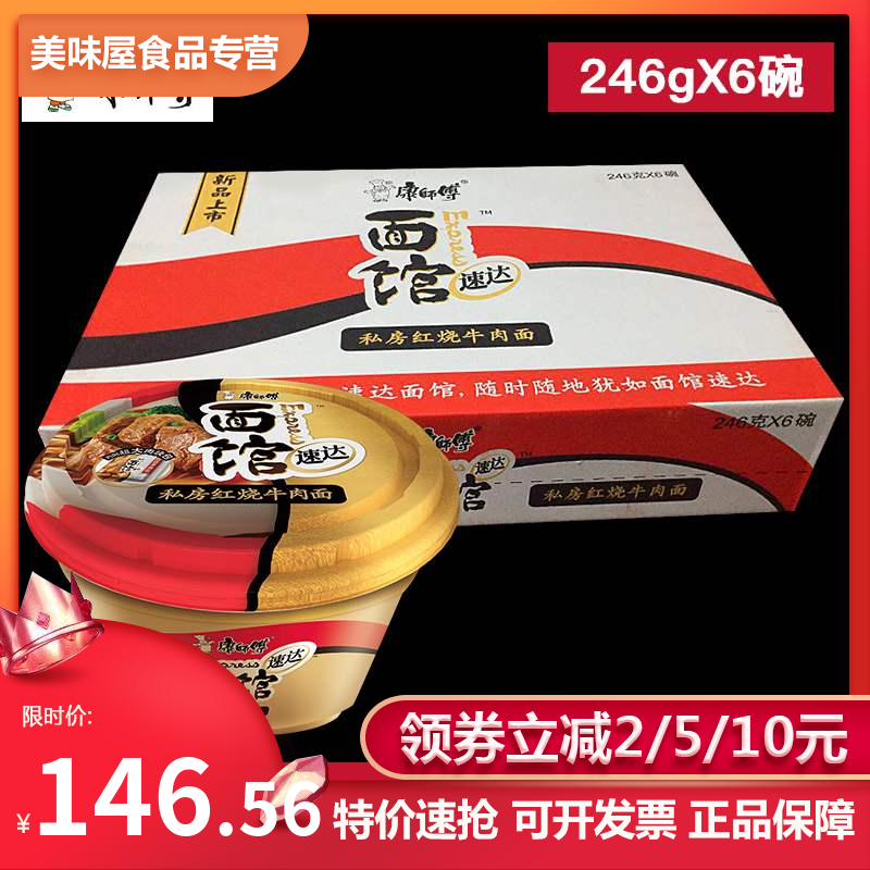 康师傅速达面馆Express整箱装6碗方便面私房红烧牛...