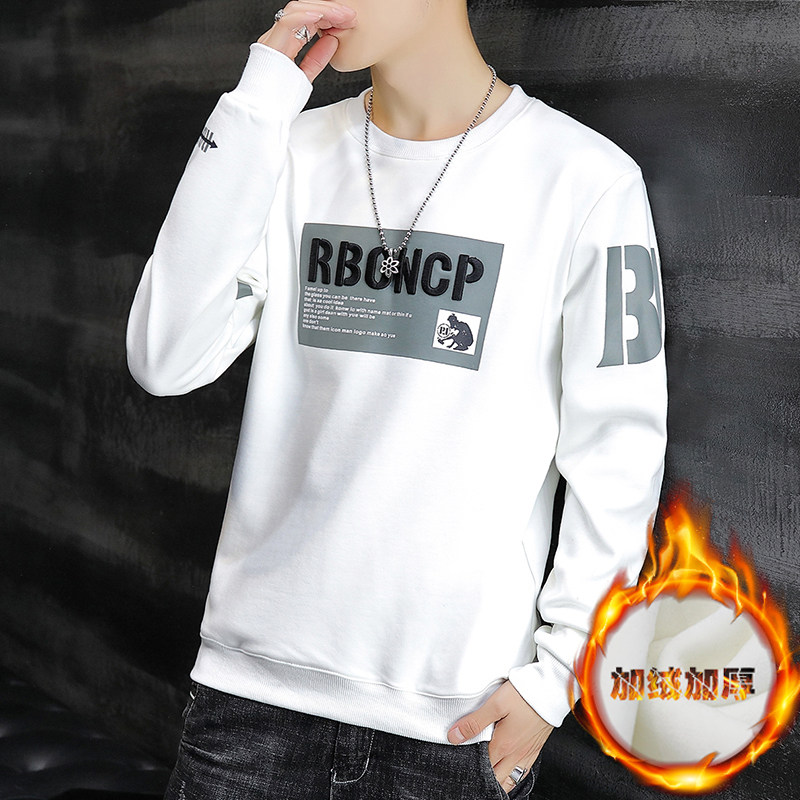 加绒卫衣男冬季初中学生帅气加厚打底衫纯棉高中生...
