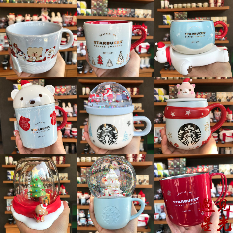 星巴克新款小雪怪北极熊杯垫刺猬挂饰爬梯水晶球陶...