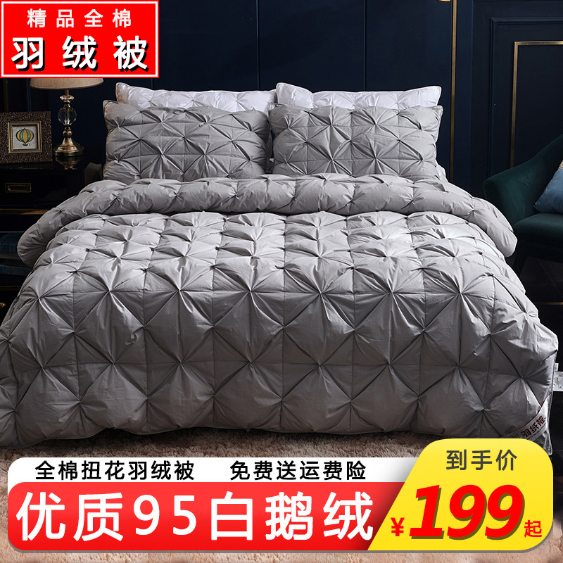 羽绒被95白鹅绒全棉扭花加厚保暖冬季被芯单双人学...