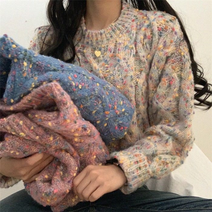 chic撞色麻花减龄毛衣女秋冬外穿2019新款韩版宽松...