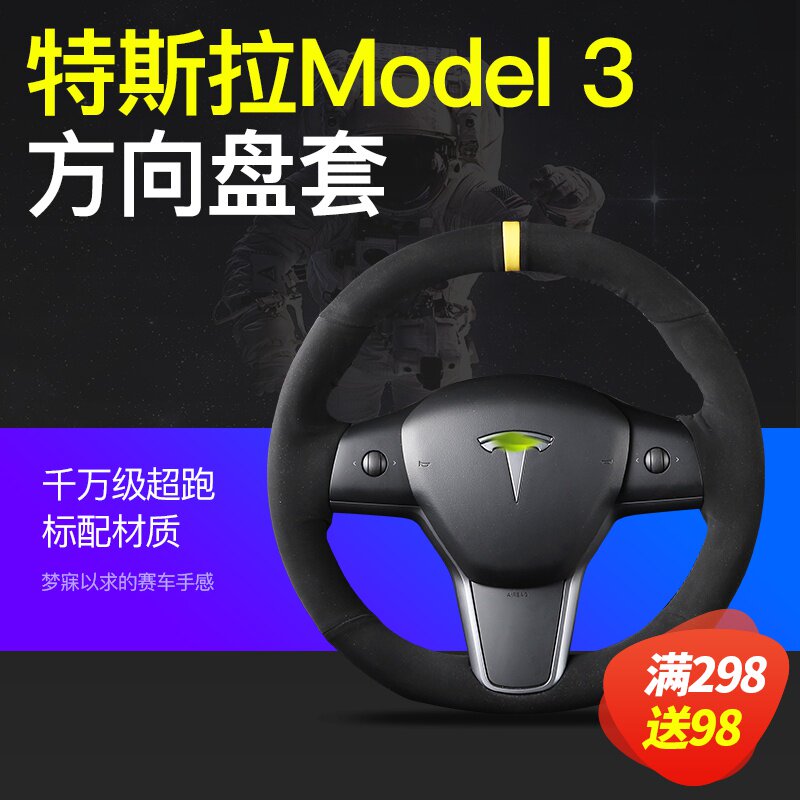 适用于tesla特斯拉model3方向盘套改装专用手缝真皮...