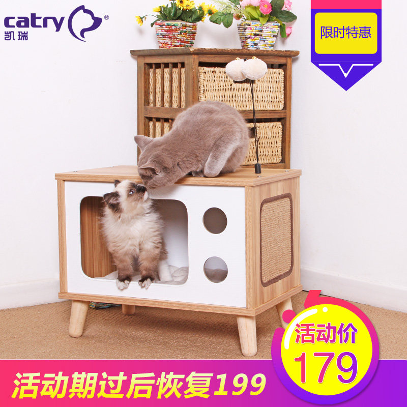 catry凯瑞猫爬架实木猫架猫窝一体猫别墅可拆洗猫跳...
