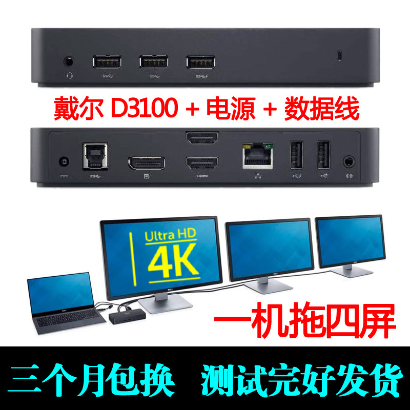 4K高清 戴尔D3100扩展坞USB3.0微软Surface pro3/4/...