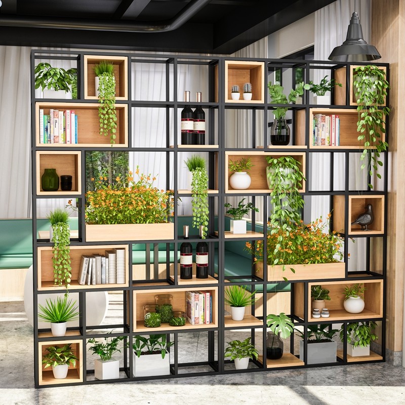 美式实木铁艺屏风隔断复古书架工业风LOFT展示架落...
