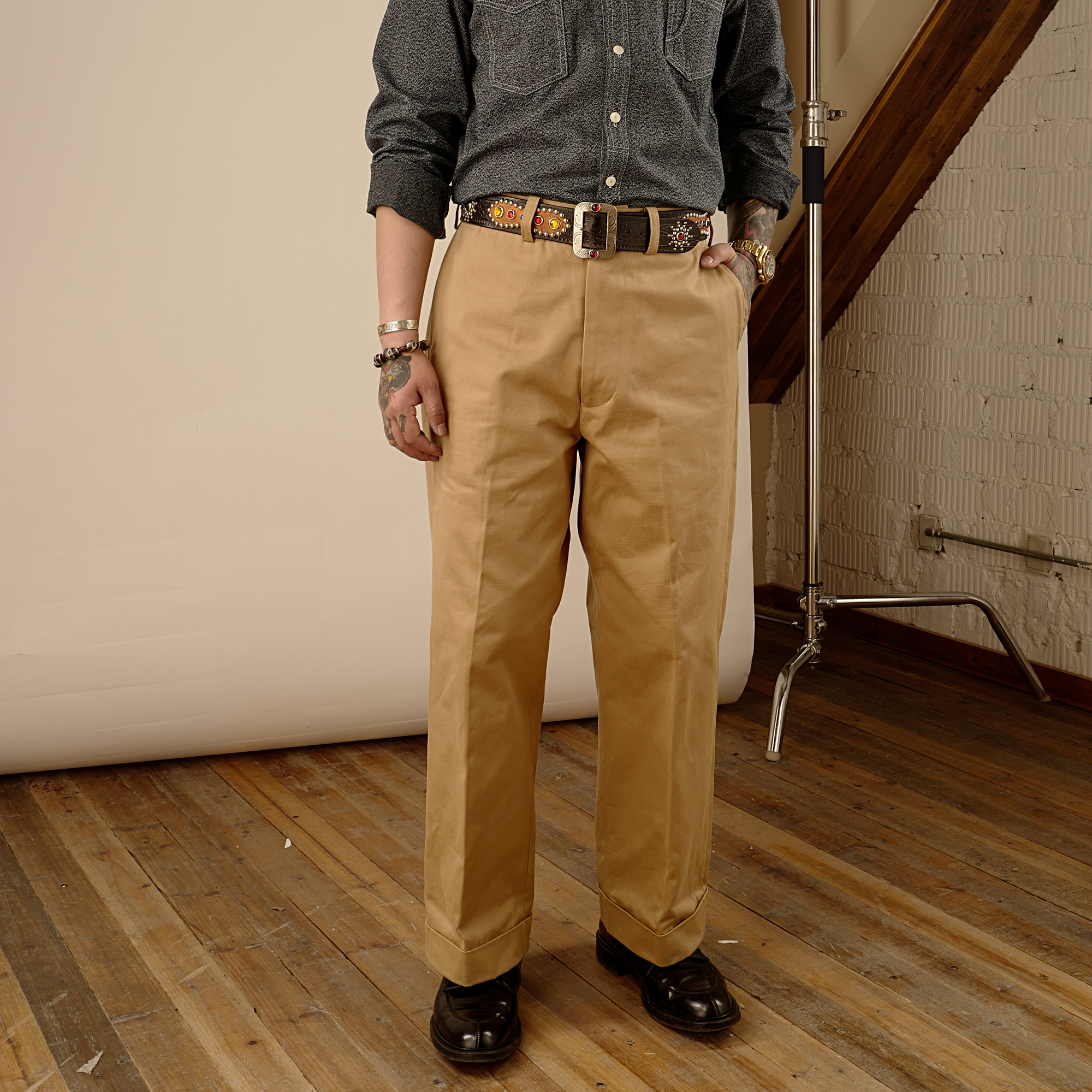 Labour union 美式 Chino 高腰绅士阔腿卷边 卡其裤...