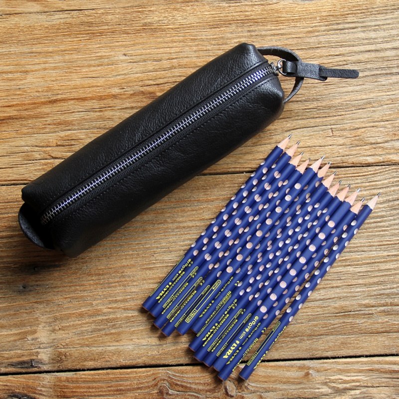 大容量进口头层牛皮笔袋真皮文具袋纯皮钢笔袋化妆...