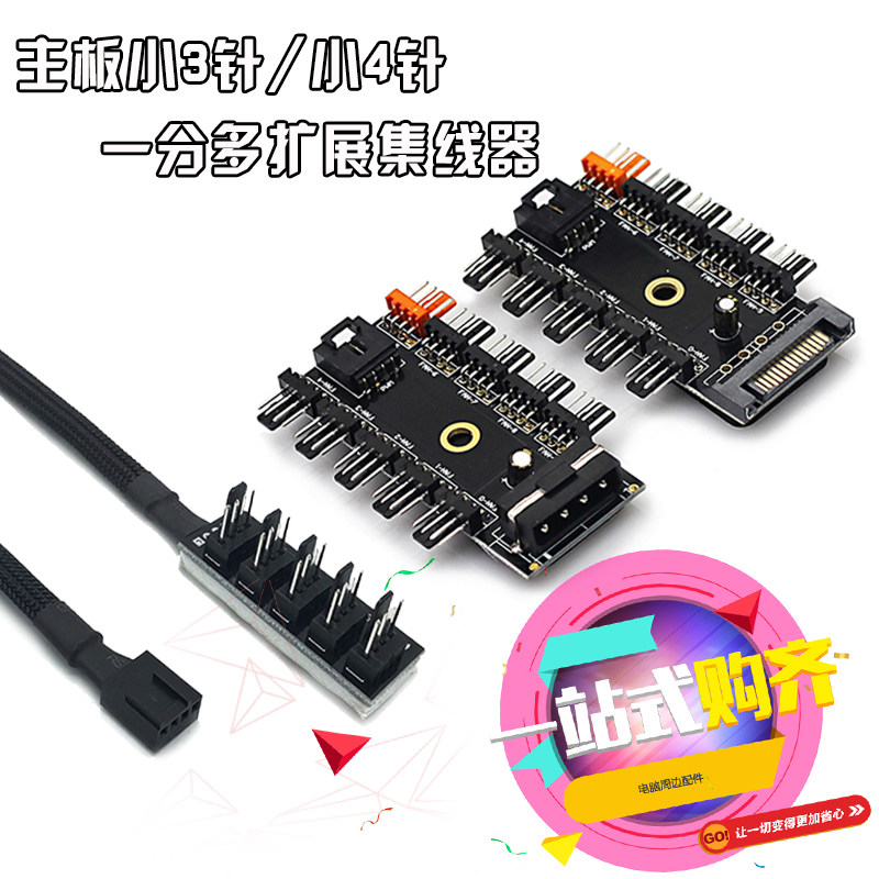 风扇集线器FANHUB电脑PWM温控调速小3/4针风扇小3/4...