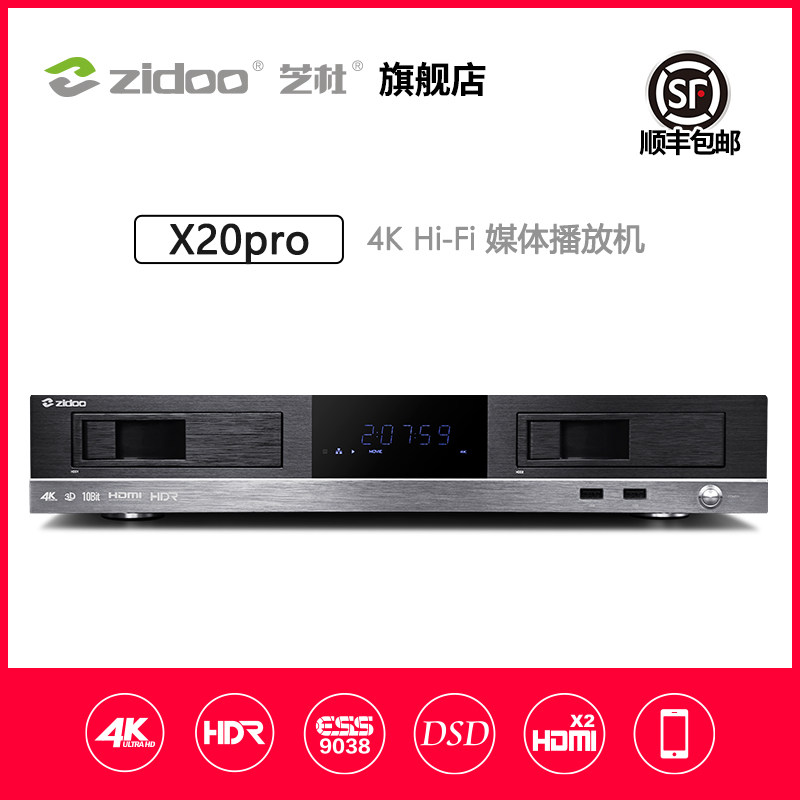 芝杜ZIDOO X20PRO 蓝光硬盘播放机4K HDR双HDMI双硬...