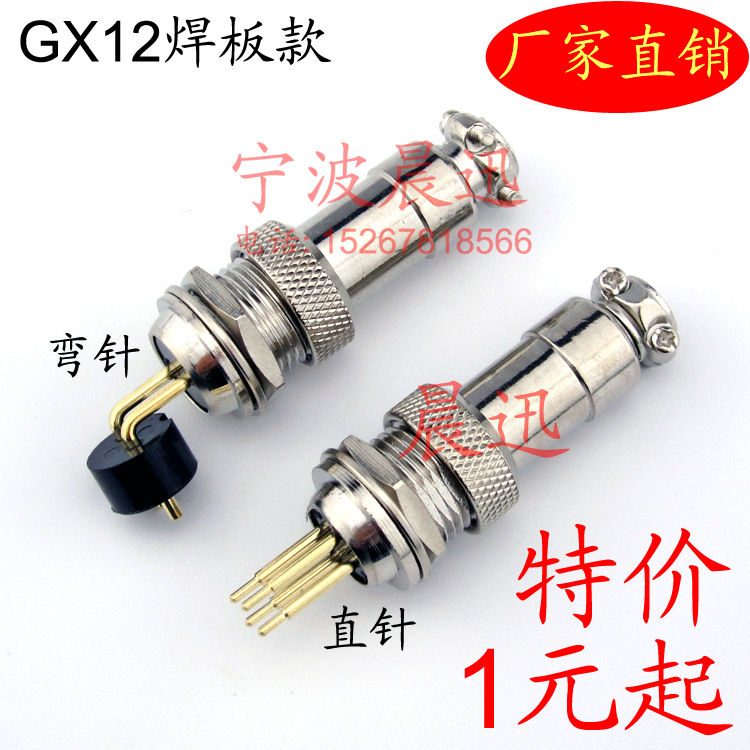 M13弯针RS765 GX12-2 3 4 5 6 7芯PCB焊板式线路板...