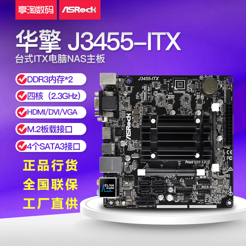 华擎J3455-ITX nimi小主板 四核套板 NAS 工控 三显...