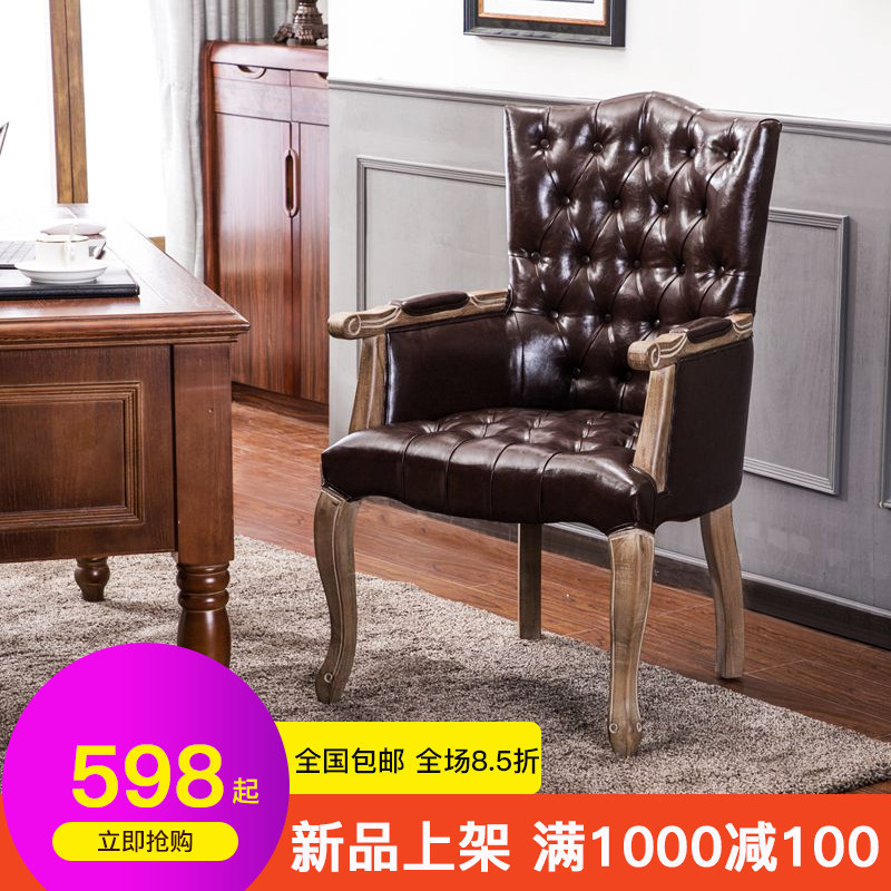 美式餐椅书房椅子复古实木靠背家用舒适高档接待洽...
