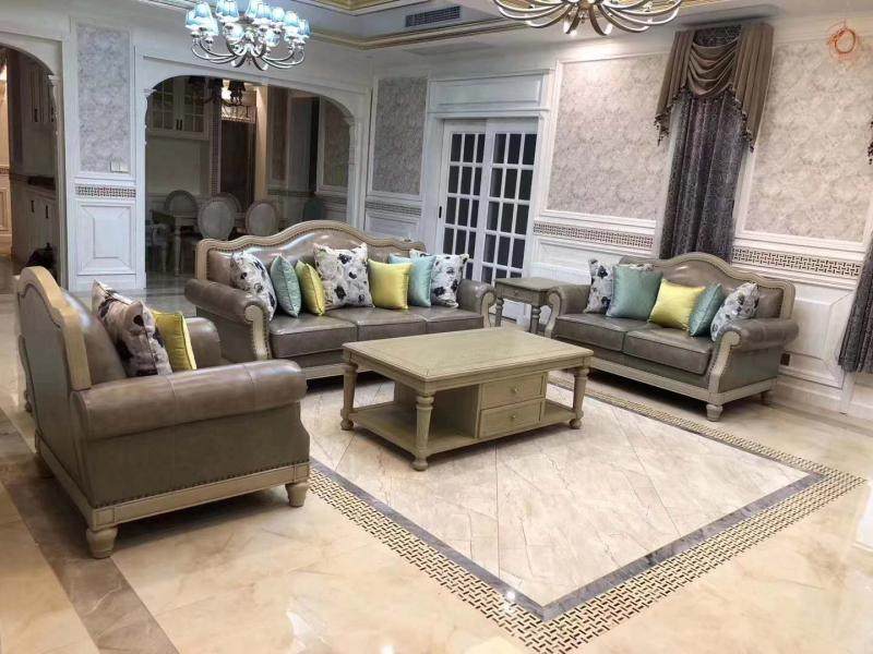 纯美蓝山家具柏纷家具高级灰真皮实木沙发软包床美...