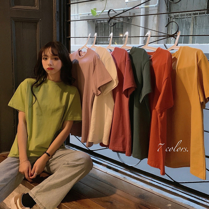 夏季韩版2020新款简约百搭宽松体恤BF风纯色圆领短...